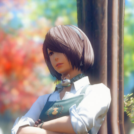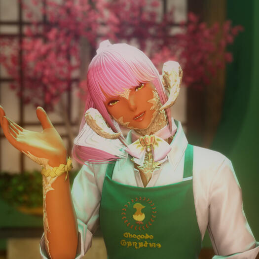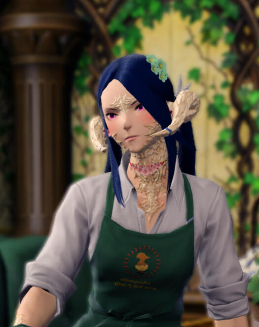 Role: Wait Staff / ServerA half-elezen runaway from Ishgard whose fortune found her at the steps of the Lavender Beds. This eager and naive server is happy to be of assistance between visits to the book cafe.