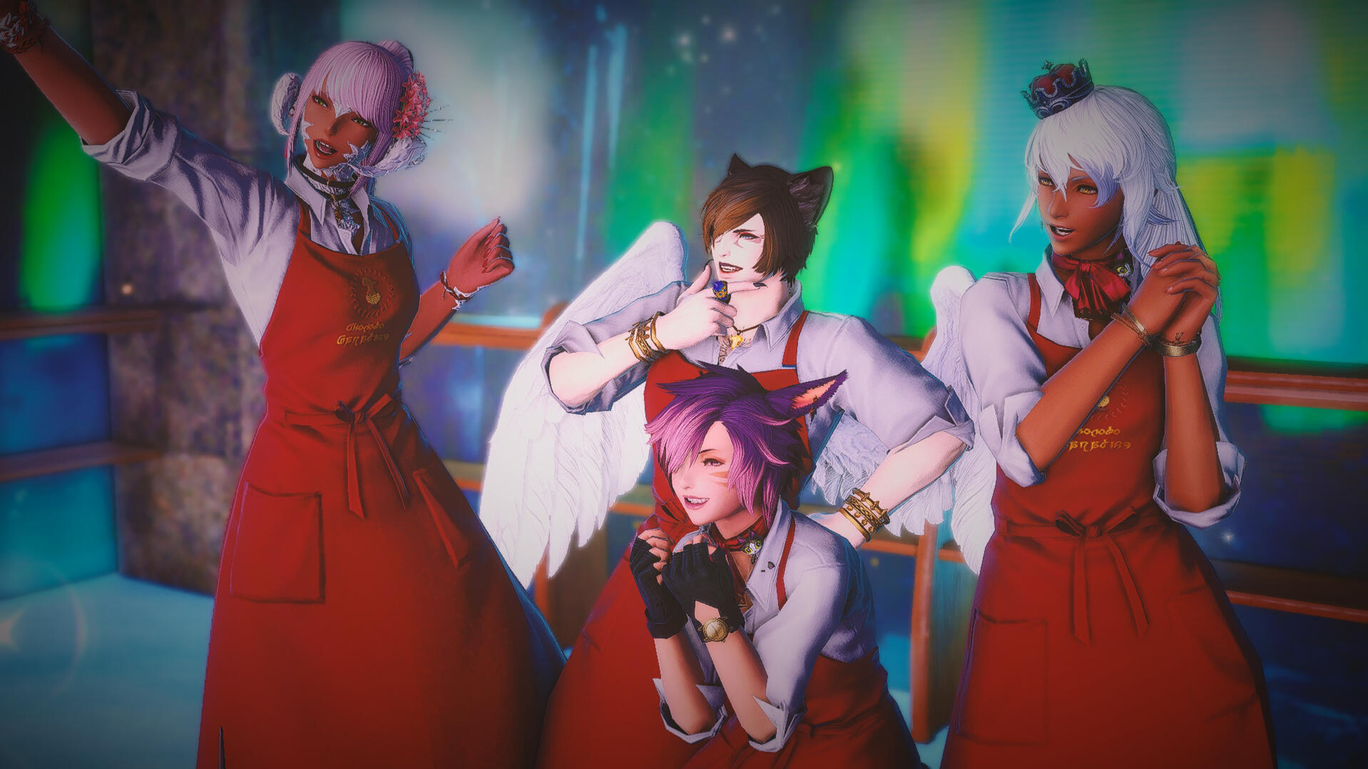 If you would like to apply for a position at the Starry Garden, you will have to message either Jaydin Byrd or Myrddin Wynn of the Starry Knights «.SKG.». Please note that everything that happens at the Starry Garden is for the fun of it, and that there is no real gil that will be paid unless by the customer that comes in. If this is fine for you, then feel free to message us at any time!Keep in mind: you do NOT have to be a part of the Starry Knights «.SKG.» in order to have your character RP work at the Garden! We would like it, however, if we could establish an in-character reason as to why your character is working there, though. No rush on that aspect, however!We do have a dress code that people who want to work at the Gardens should abide by. If you do not have the following, please do your best to just dress as close to it as you can!Server or Waitress• Nophica Green Craftsman’s Apron OR any pastel hue Salon Server's Top of either kind (body)